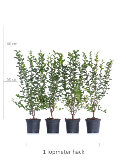 Plantera så snart som möjligt och se till att rötterna har fått ordentligt med vatten inför planteringen, t ex. genom att ha blötlagt dem innan. Se till att häckdiket är tillräckligt stort, ca 50 cm brett och lika djupt brukar vara lagom. Jordförbättra med planteringsjord och se till att plantan hamnar i samma höjd som omgivande mark. Det är viktigt att tillse att stammen är fri från jord. Vattna rikligt i samband med planteringen. Lägg gärna ut en droppslang för att säkerställa en regelbunden bevattning. På så vis ger du plantorna de bästa förutsättningarna för att etablera sig på den nya växtplatsen.